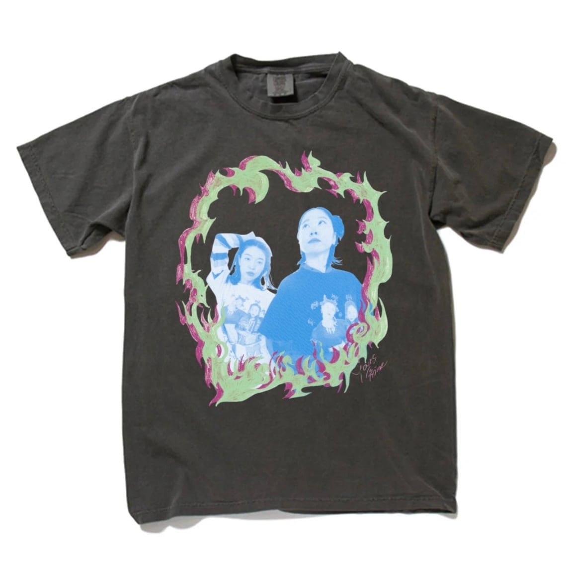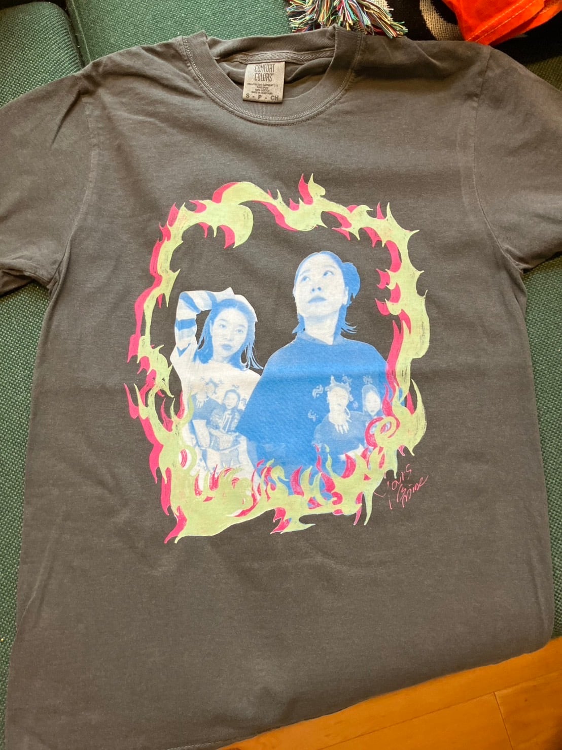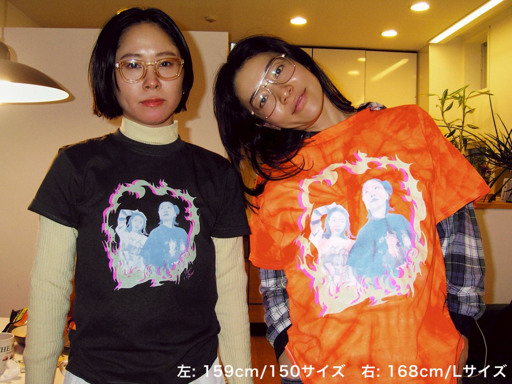 2015年に発売したY.I.M.”You do you” tour Tシャツを着る私たちが、最熱のFLAME FRAME(炎の枠)に囲まれておすまししています。